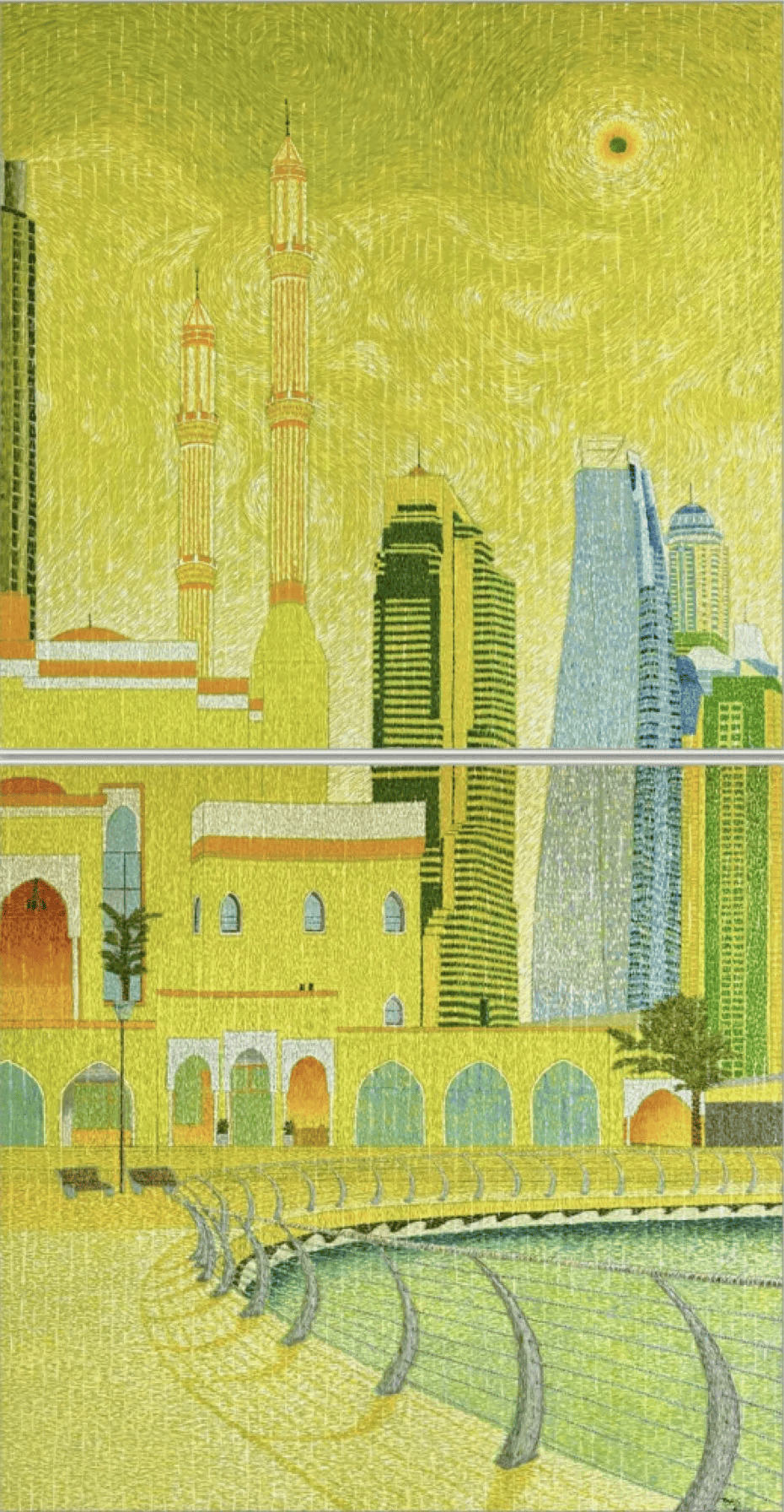 With the Arab World Series, Touils explores the interplay between tradition and transformation, creating layered compositions that reflect the textures of history and modernity. From the geometric patterns of architecture to the movement of souks, his paintings capture the pulse of social and cultural landscapes.